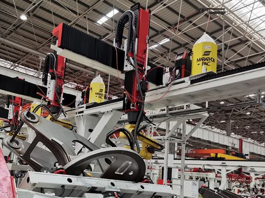 采用麦米电气Artsen Plus 500QR配合机器人焊接,达到客户满意效果。超低飞溅,大大减少了后续的打磨工序,焊缝成型美观,无咬边,表面成型均匀一致,颜色呈白亮色,合格率99.5%。转台采用变位机与机器人联动焊接,焊机稳定可靠,热输入低,水箱水流循环正常,降低了易损件的损耗频率。导电嘴使用寿命大幅延长3倍,喷嘴清理的次数也由原来的半天清理一次,提高到现在一天清理一次,整体生产效率提升50%。